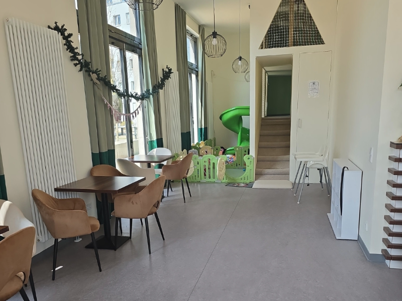 Площадь ~140 м²: грамотно зонированный зал, кухня, склад, подвал и большая детская игровая зона